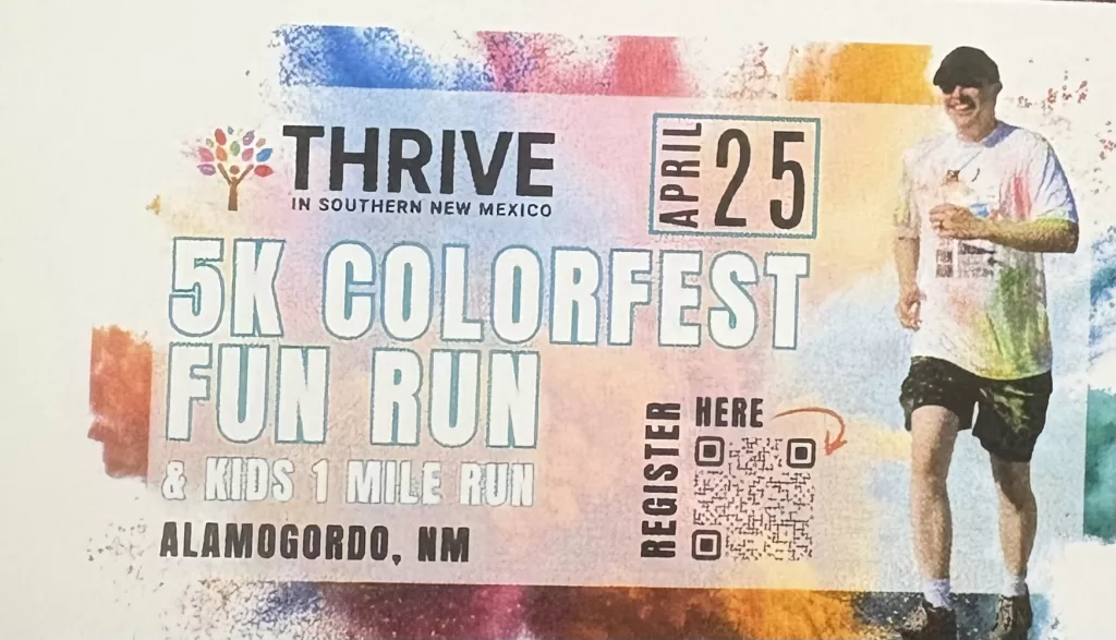Get ready to move, laugh, and get covered in color at the THRIVE in Southern New Mexico 5K Colorfest Fun Run! This vibrant 5K is all about fun, fitness, and community-welcoming runners, walkers, families, and friends of all ages and abilities!